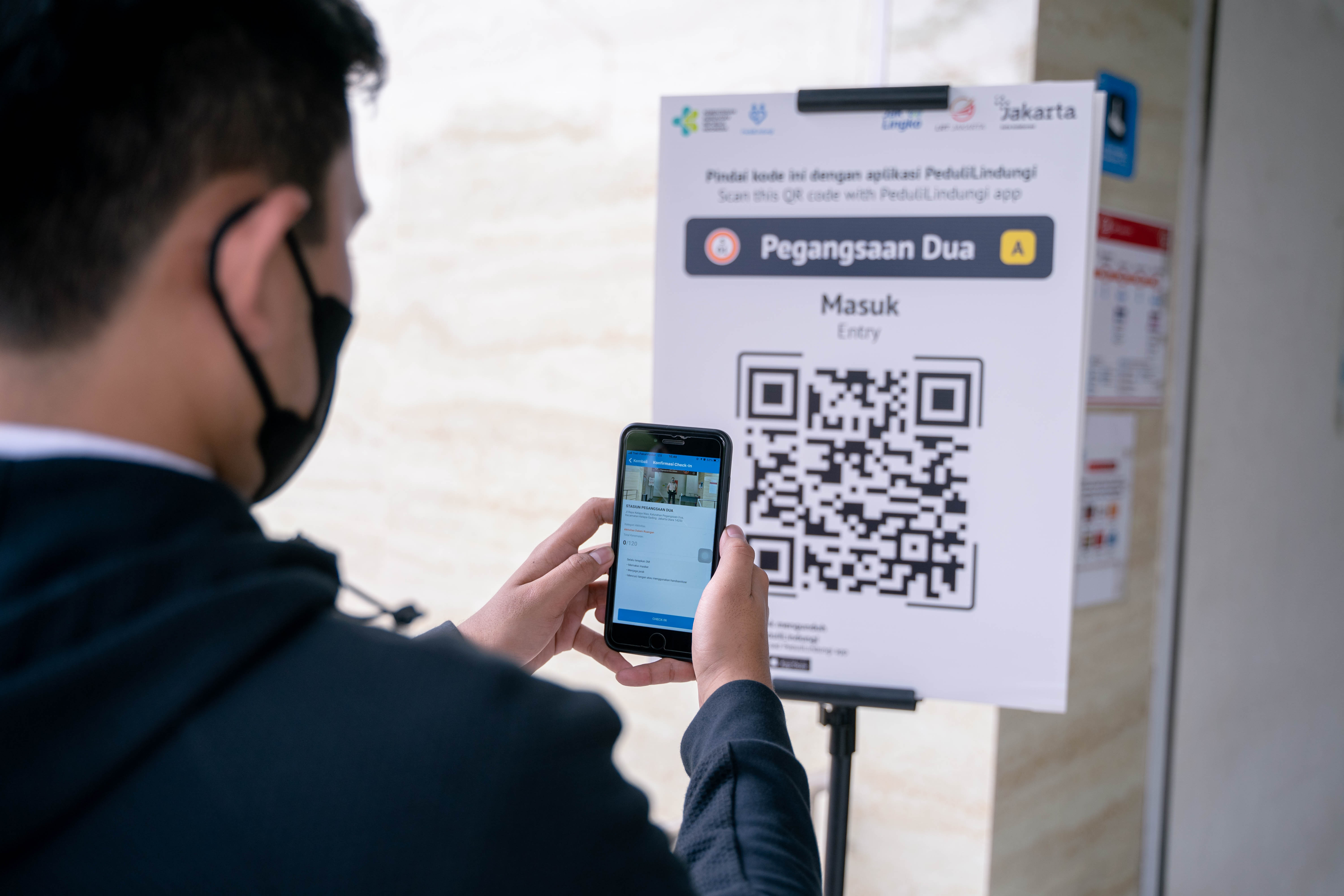 Penerapan Aplikasi PeduliLindungi di Stasiun LRT Jakarta
